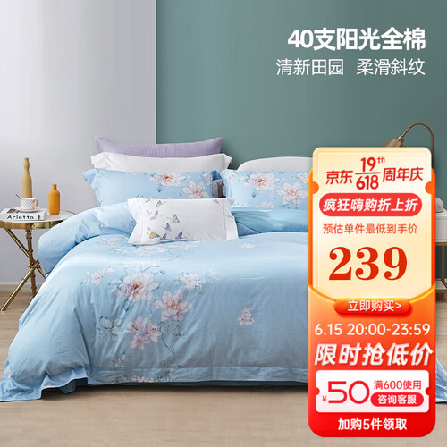 富安娜 纯棉双面四件套