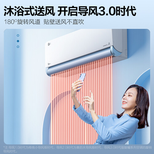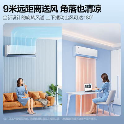 全新设计的旋转风道,打破了送风角度,站在空间不同角落都可享受空调。长达9米送风距离,大房间也适合安装,快速带来舒适温度。