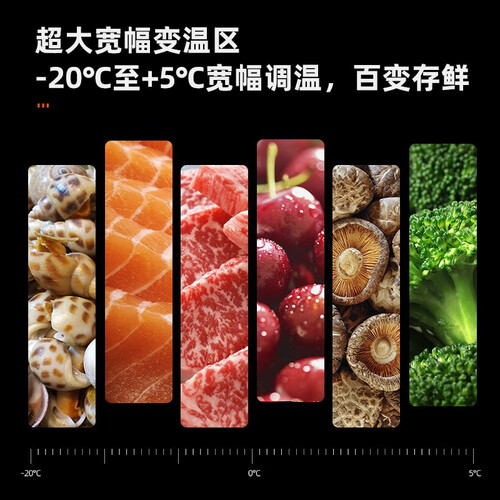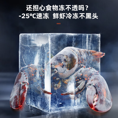 智能双变频技术,运行更快更平稳,波动小,保鲜黑科技,无需解冻,鲜肉轻松一刀切,快速制冷,不破坏食材细胞。