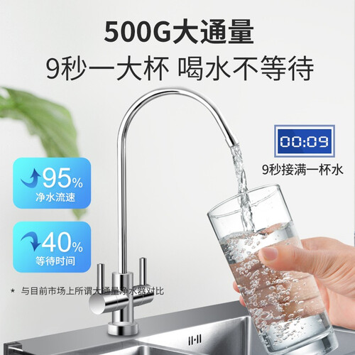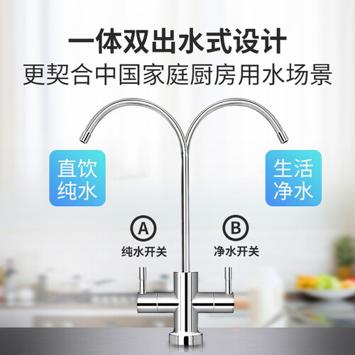 智能屏显滤芯功能,可以实时显示滤芯使用寿命,更加智能实用。一体双出水的设计,更加高效,让接水更方便。
