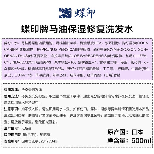 添加马油的成分,能有效调节头皮状态。无硅油,不堵塞头皮毛孔,改善吹染烫与脆弱的发质,使秀发易于梳理。