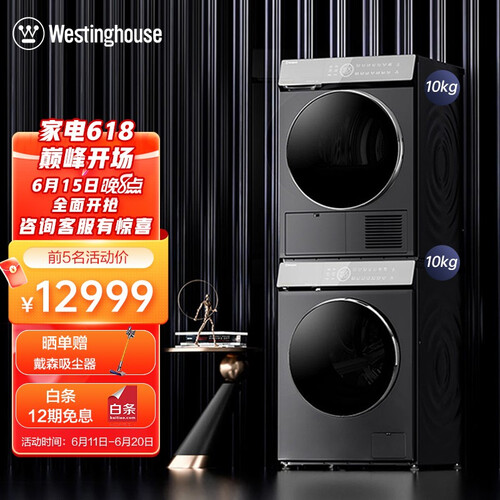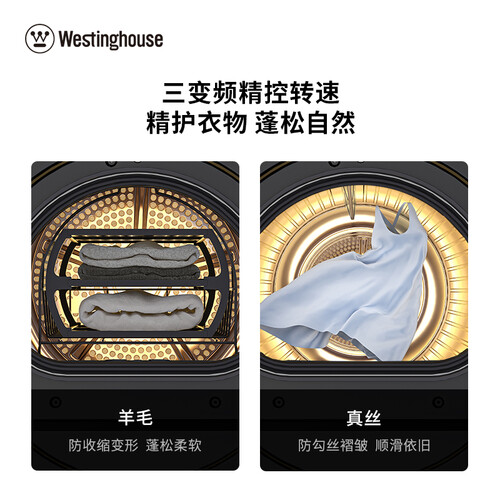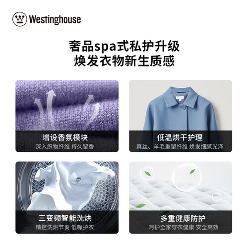 内含10KG大容量,满足大件衣物洗涤需求,让洗烘一次搞定。搭载DD直驱变频电机,提供澎湃动力,强力去除污渍,快速净衣。