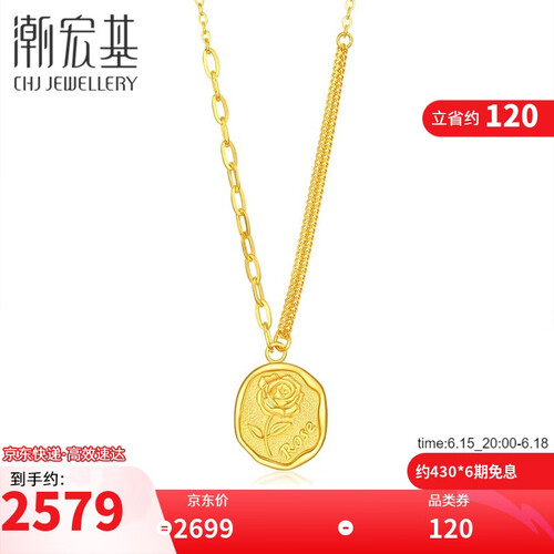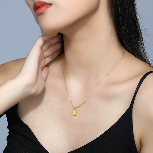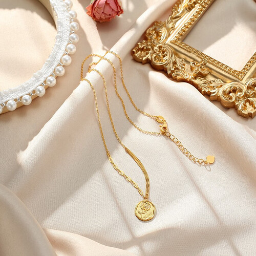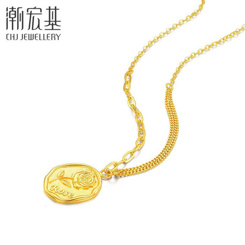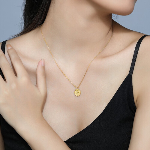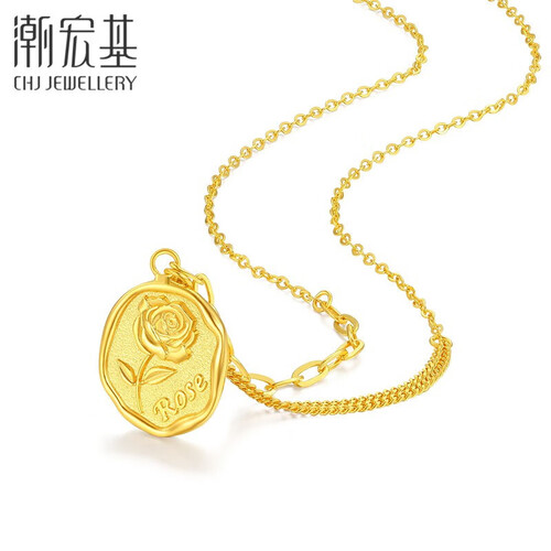 采用足金材质精心锻造,质感细腻亮泽,不规则的圆币具有几何美感。玫瑰的设计元素具有复古韵味,寓意对生活幸福美满的期望。