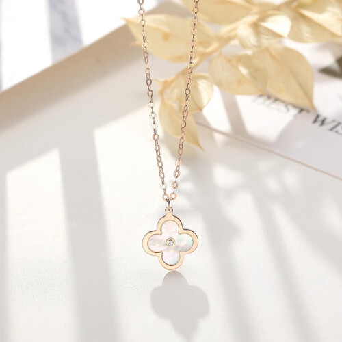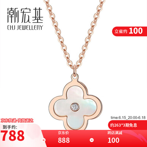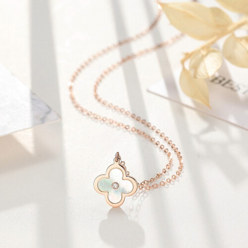 潮宏基 四叶草母贝K金项链