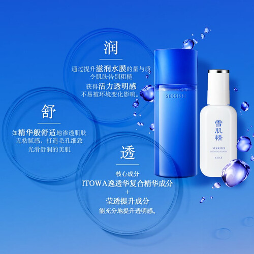 爽肤水渗透补水,细腻美肤,增加肌肤透明度,植萃养肤力量更加温和耐受,乳液深入保湿滋养,紧锁肌肤水分,透现细腻柔滑感。
