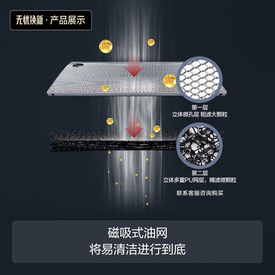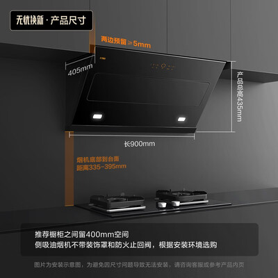 900mm全黑机身,灵动纤巧,让厨居生活更添一份艺术美感。搭载原厂优质电机,可强劲吸排油烟,营造洁净厨居空间。