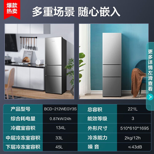 设置特殊的环抱式出风口,可以将冷风扩散到冰箱角落,实现均匀送风,让食材时刻保持新鲜又水润的状态。
