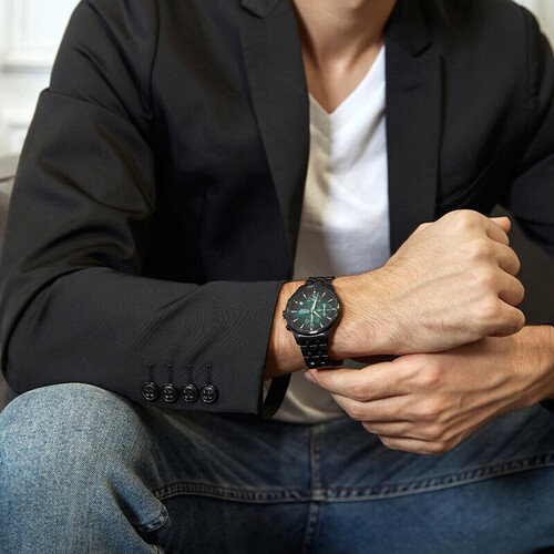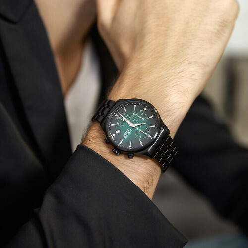 采用进口石英机芯,走时准确稳定,使用寿命更长。三眼渐变的太阳纹表盘,丰富视觉层次感,为腕间带来澎湃动力。