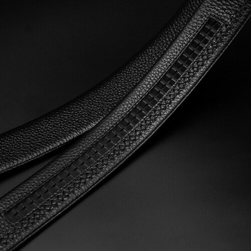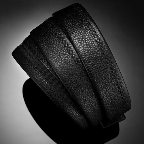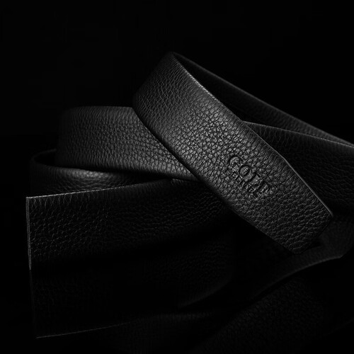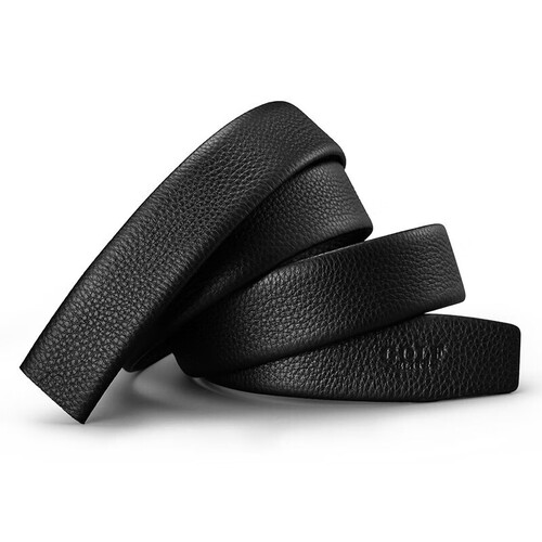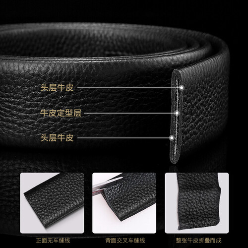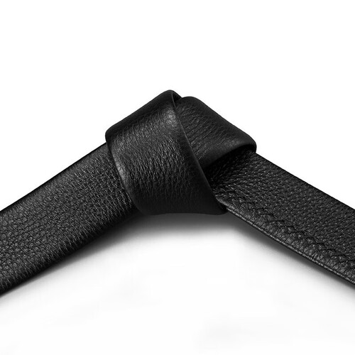 采用整张牛皮切割而成,背面交叉车缝线,整齐美观,而且结实耐用不易断,整体以纯黑色演绎,低调简约,可随意搭配。