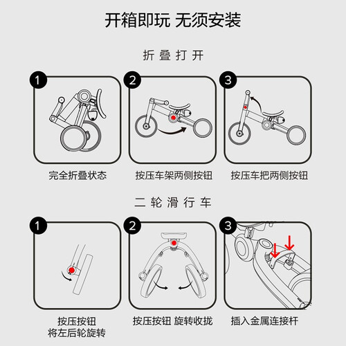 意大利设计工艺,折叠后收纳不占空间,让房间保持整洁宽敞。低重心三角稳定设计,搭配加大免充气发泡轮,舒适减震不颠簸。