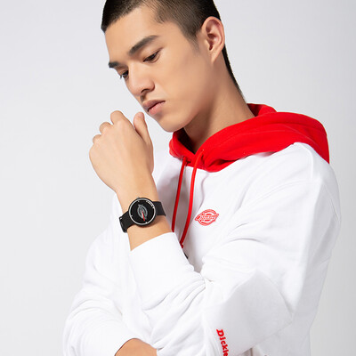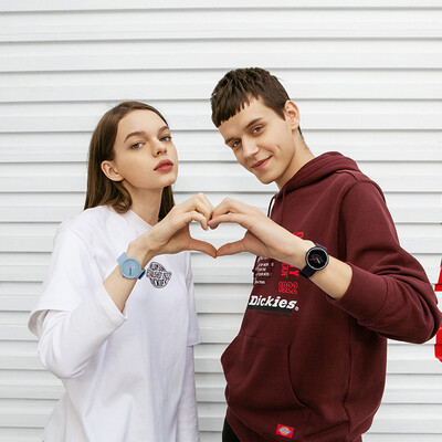 表带采用硅胶材质制作,具有柔软细腻的触感,亲肤舒适。logo图标装饰,彰显品牌魅力。撞色指针,活力出彩。