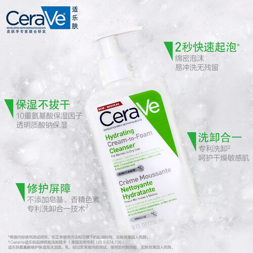 洁面能够2秒快速起泡,泡沫绵密细腻,舒爽洁净干性和敏感肌。10种氨基酸结合透明质酸钠,洗后令肌肤水润不拔干,干敏皮挚爱。