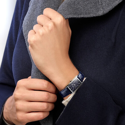 方形表盘显得棱角分明,举手投足间能够展现出文艺复古的气息。表带采用鳄鱼皮材质制作,触感柔软,贴合舒适。