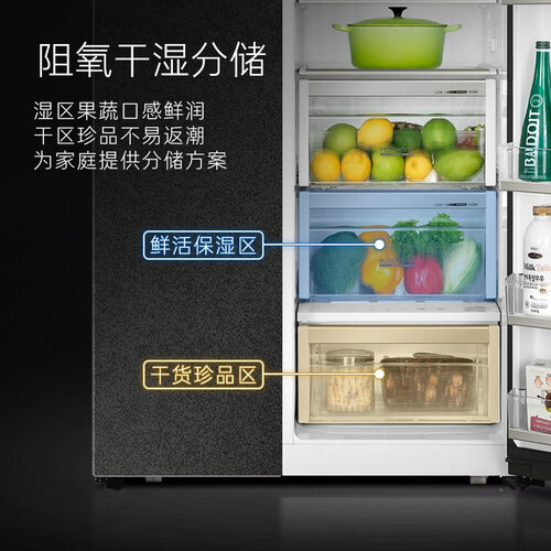 干湿分储设计,可根据食材类型的不同进行保鲜,储存时间更久。搭配大容量机身,不仅能满足全家人使用的需要,还能防止食物串味。