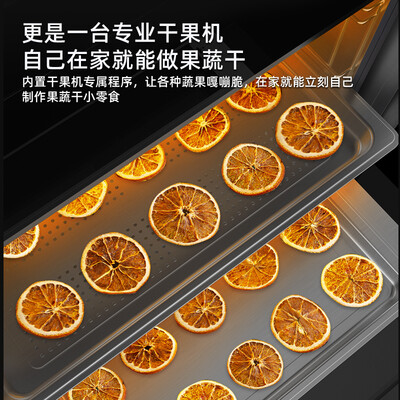 内翻盖防倒灌设计,45°斜角聚拢,广域吸烟口,迅速排烟,打造干净厨房。一键自动内腔清洁,省时省事。8大蒸烤箱功能,美食一键搞定。