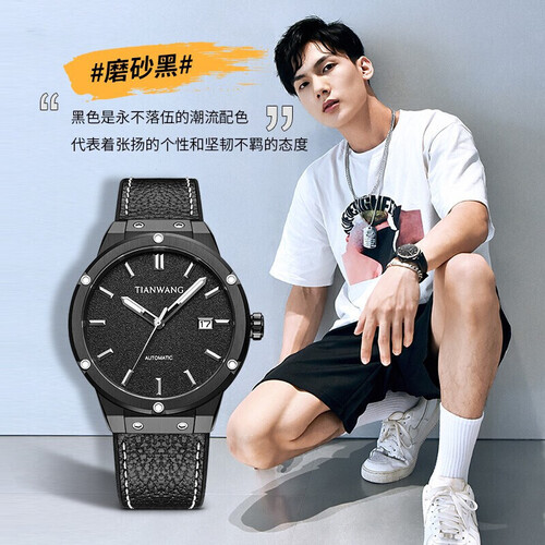 天王表 皮带机械男士手表