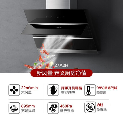宽屏拢烟设计,拢烟效果好,油烟不易四散弥漫。采用双效降噪技术,吸烟声音低沉不尖锐,让您安心下厨少干扰。