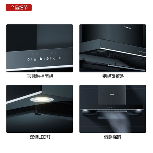 外置贴心双倍LED灯,柔和光线不刺眼,昏暗环境也能清晰把控烹饪状态。搭载可拆卸式烟板,方便清洁更整洁,干爽生活品质。