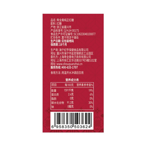 寿全斋 纯正红糖块