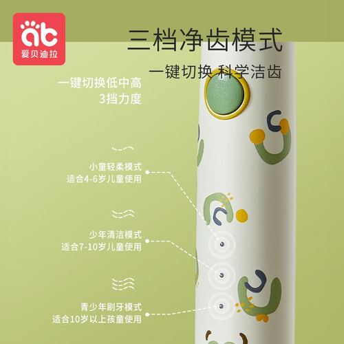 拥有高频声波震动功能,不刺激宝宝牙齿的同时,更好带走牙齿中藏纳的污渍。运用智能压力感应技术,自适应调整强度,刷牙更舒适。