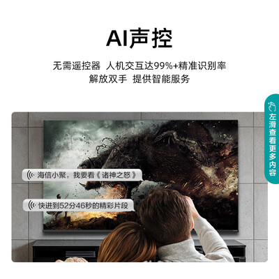 130%高色域,色域精细铺染,精准还原色彩,呈现真实自热的视界。AI远场语音,无需遥控器,即喊即播,解放双手。