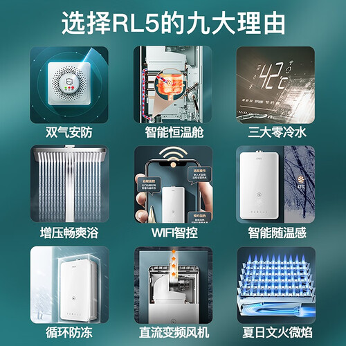 CO双气安防,不用担心气体泄漏造成安全隐患,同时拥有智能温感功能,带给你舒适的温度体验,沐浴轻松愉快,畅享品质生活。