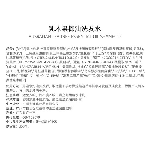 乳木果精华萃取,能够帮助头发提亮光泽,深层滋润秀发,令秀发柔顺亮丽。椰子油成分减少秀发蛋白质流失,滋润发梢,营养保湿。