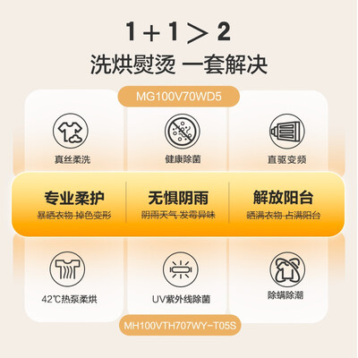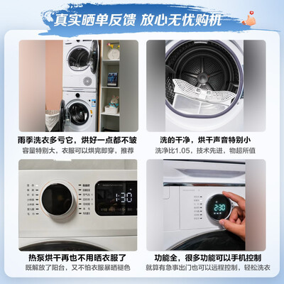 符合一级能效,节能省电,随心洗护衣物不惧电费开销。采用10+10kg大洗烘容量,更大的洗烘空间,轻松搞定二胎家庭洗护。