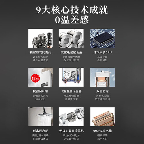 三维变频恒温,可以准确的调节水量和水温,让你有舒适的沐浴体验。全铜封闭水冷燃烧室,能够保证它的正常使用,减少你的烦恼。