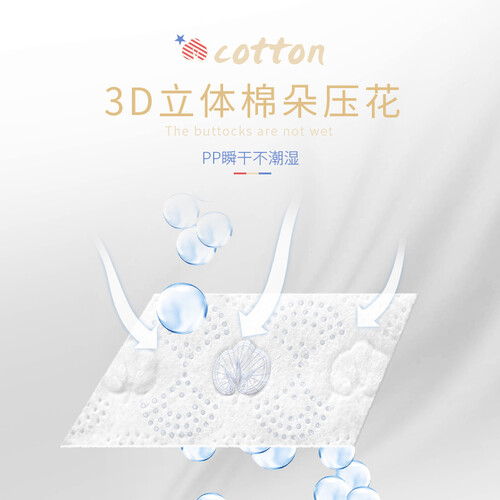 优选配比面料,吸湿排汗,舒适柔和,给宝宝更好的呵护,生活更舒适。采用PE防水透气底膜,尿液不外漏,排出湿气。