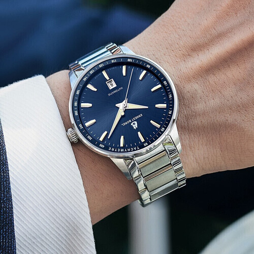 富有特色的蓝色太阳纹表盘,镌刻品牌logo,辨识度高。具有夜光功能,不惧黑暗,夜间也能清晰读时。