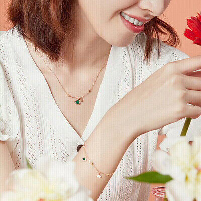 选用18K金和孔雀石材质打造,优良选材,佩戴优雅有品位。外观小巧精致,时尚佩戴,帮助修饰锁骨之美。