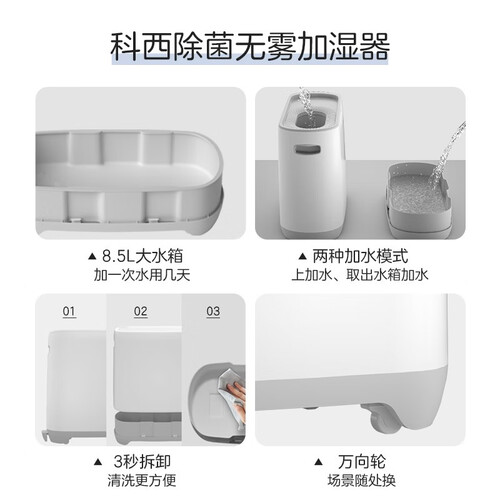 大面积蒸发加湿棉的设计,可持久保持室内空气水润,蒸发效率高。模拟大自然的冷蒸发方式,无雾无粉,PM2.5等于零。