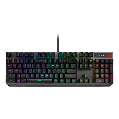 ROG这款键盘配备了光学机械轴体,采用光源触发按键更快减少延迟,还能带来长久使用寿命。