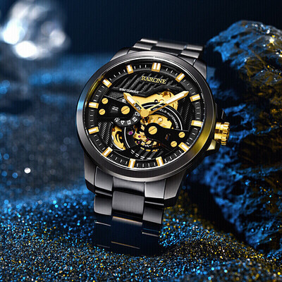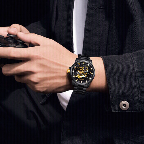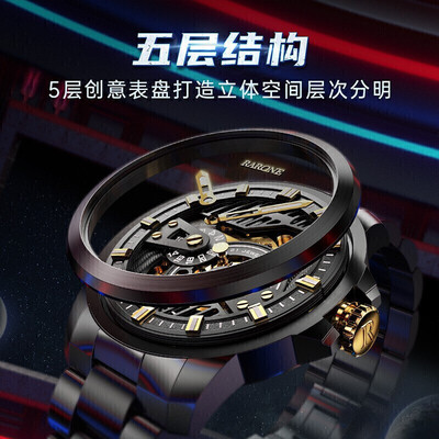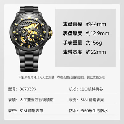 多层镂空的表盘,立体空间层次分明,展现机械运转魅力,同时拥有50米防水的性能,轻松应对日常溅水的场景。