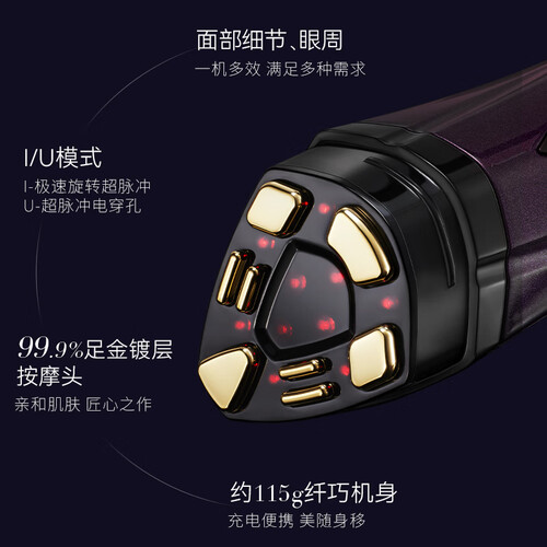 整机自重仅仅只有115g,造型小巧精致,便于随身携带,随时都可用。99.9%足金镀层按摩头,亲和肌肤,顺滑细腻不刺激。