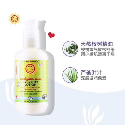 含有金盏花提取物,可以密集水润肌肤,防止宝宝肌肤干燥红痒。清爽乳液质地,更易吸收,不会给宝宝肌肤造成负担。