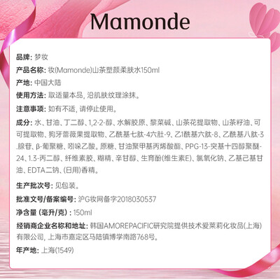 梦妆 山茶修护 爽肤水