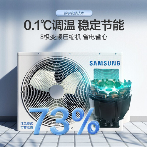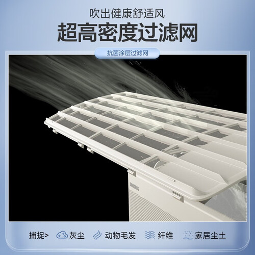 新三级能效的加持,具有出色的节能环保特点,省电又省钱。面板设有2.3万个微孔,出风更加清油舒适。