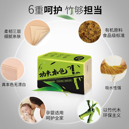 精选原生竹浆,没有经过漂白处理,保留着健康本色,放心接触肌肤。独立包装设计,方便外出时随心携带使用。