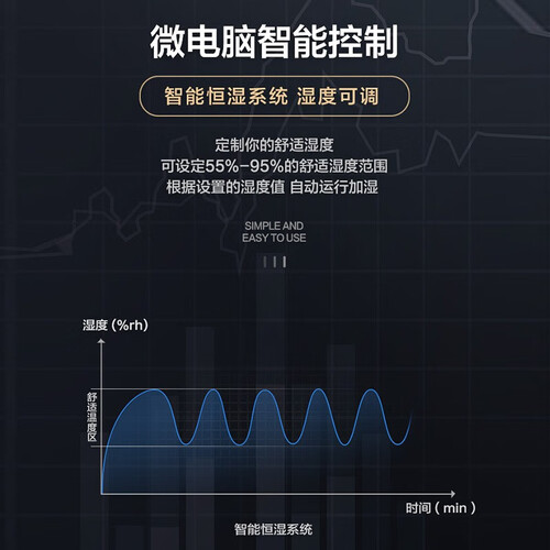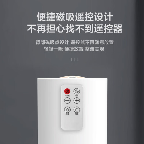 背部带有磁吸,可以放置遥控器,不用寻找遥控器,更方便收纳。使用微电脑控制,可以设定舒适的湿度,自行加湿不用调节。