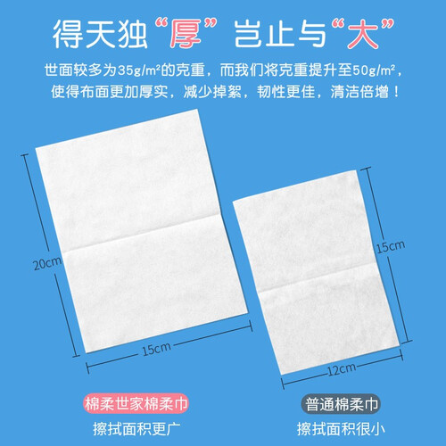 搭载水刺无纺工艺,质地稳定不掉毛絮,能够多次使用,依旧柔韧。亲肤的触感,提升使用舒适度,带给家人贴心守护。