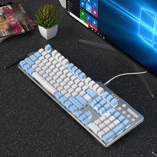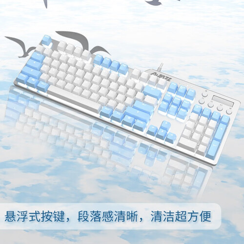 铝合金烤漆面板,让其具有十足的质感,更加经久耐用。PBT材质拼色键帽,耐磨损能力强,长久使用也不易出现掉色。