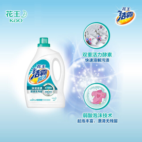 采用弱酸泡沫技术,起泡丰富,迅速漂洗无残留,让洗衣更轻松安心。双重活力酵素快速溶解污渍,机洗都能很干净。