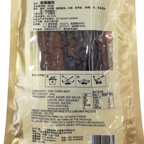 金字 紧实美味腊肠腊肉