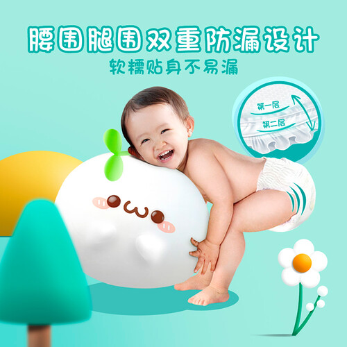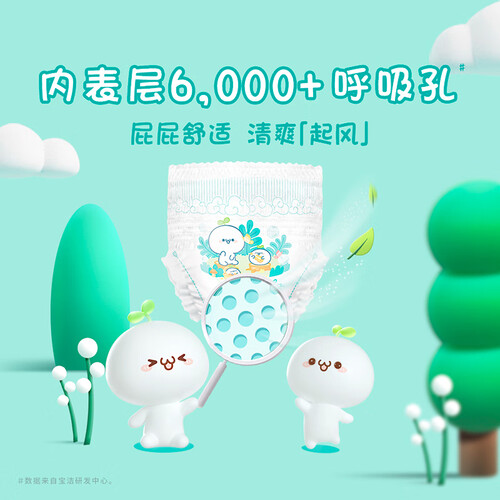 云柔泡泡腰围设计,不易勒肉,穿着活动舒适无束缚。采用纤薄的芯体,透气性良好,不易闷捂屁屁。