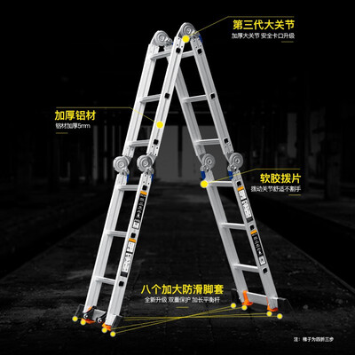 家用梯选用铝合金材质塑造而成,经过加厚处理,更加结实,长久使用不易磨损。搭载八个大脚套,防滑能力更加出色,踩踏稳固。