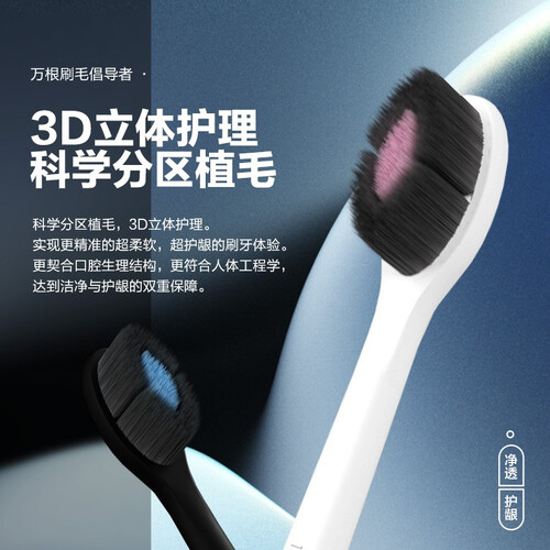 采用科学分区植毛技术打造,能够对口腔进行立体护理,并提供柔软护龈的刷牙新体验;刷头精致小巧,深入口腔深处洁净。