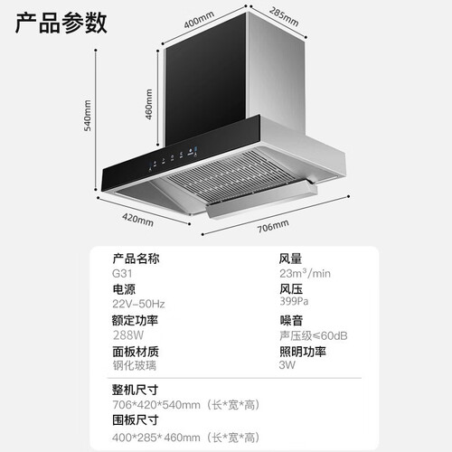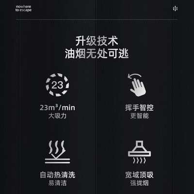 采用体感智控技术,开关机不用触摸面板,智能便捷。一级能效烟机,耗电量低,节能环保,适合大多数家庭使用。