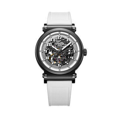 尼维达这款新上线的机械腕表采用了科技感十足的全镂空表盘,呈现出透视的效果,把机芯的雕刻质感淋漓精致地体现了出来。